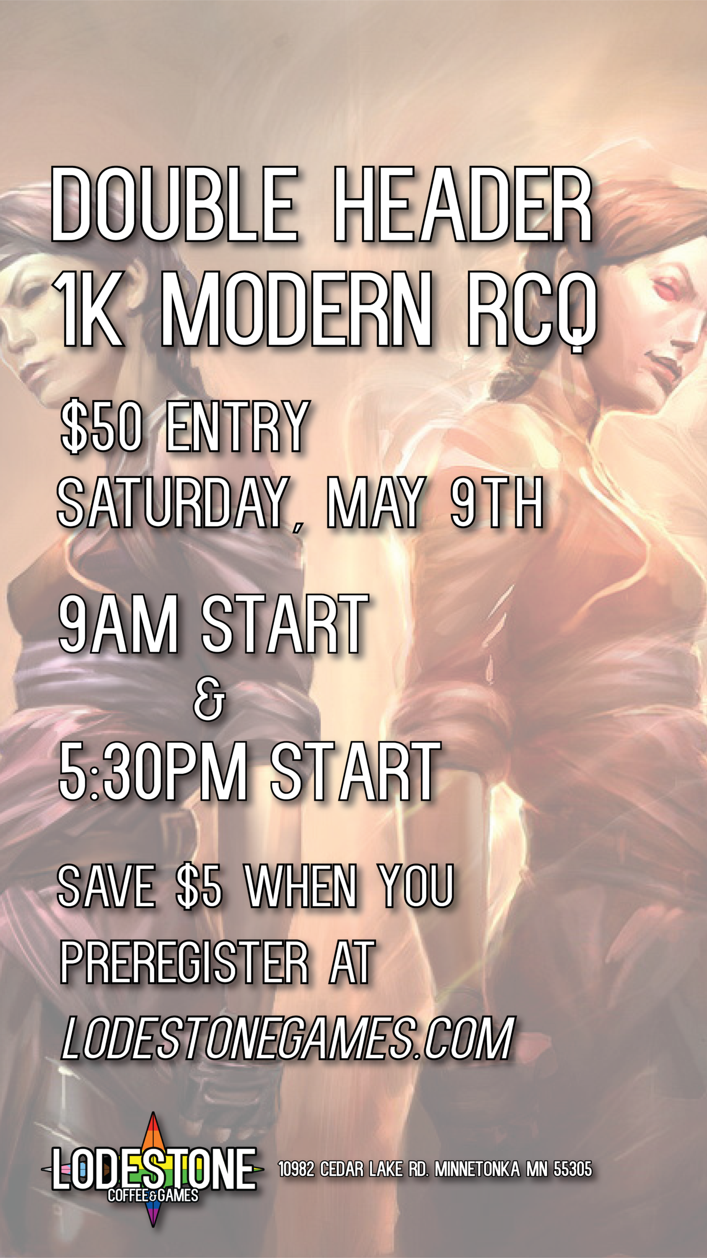 9:00am & 5:30pm start, $50 entry each. Modern Format